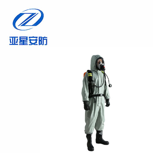 防化服是由防霧視窗及頭罩、連體衣褲、防化膠靴、雙防護(hù)腕、防化手套、雙密封拉鏈及水密封拉鏈組成的連體式服裝,使用時(shí)與正壓式消防空氣呼吸器配合使用。