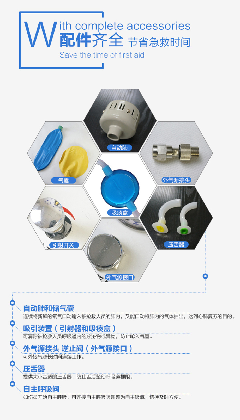 能連續(xù)地把新鮮的氧氣自動(dòng)地輸入被搶救人員的肺內(nèi),能自動(dòng)將肺內(nèi)的氣體抽除,達(dá)到心肺復(fù)蘇的目的。 可吸除被搶救人員呼吸道內(nèi)的分泌物或異物 可使呼吸機(jī)能麻痹的傷員吸氧 可外接氣源長(zhǎng)時(shí)間連續(xù)工作 體積小、重量輕、便于攜帶、操作簡(jiǎn)單、性能可靠。