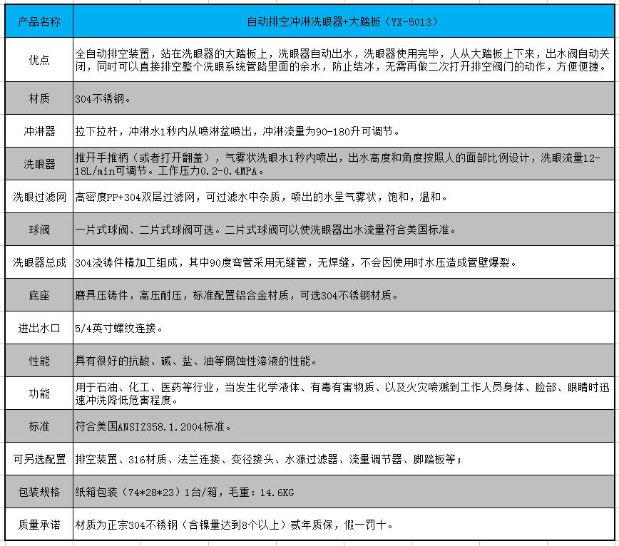 YX-5013自動(dòng)排空沖淋洗眼器+大踏板