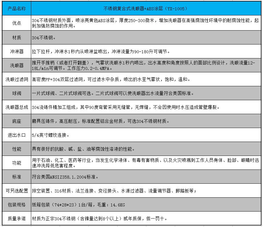 YX-1005不銹鋼復(fù)合式洗眼器+ABS涂層